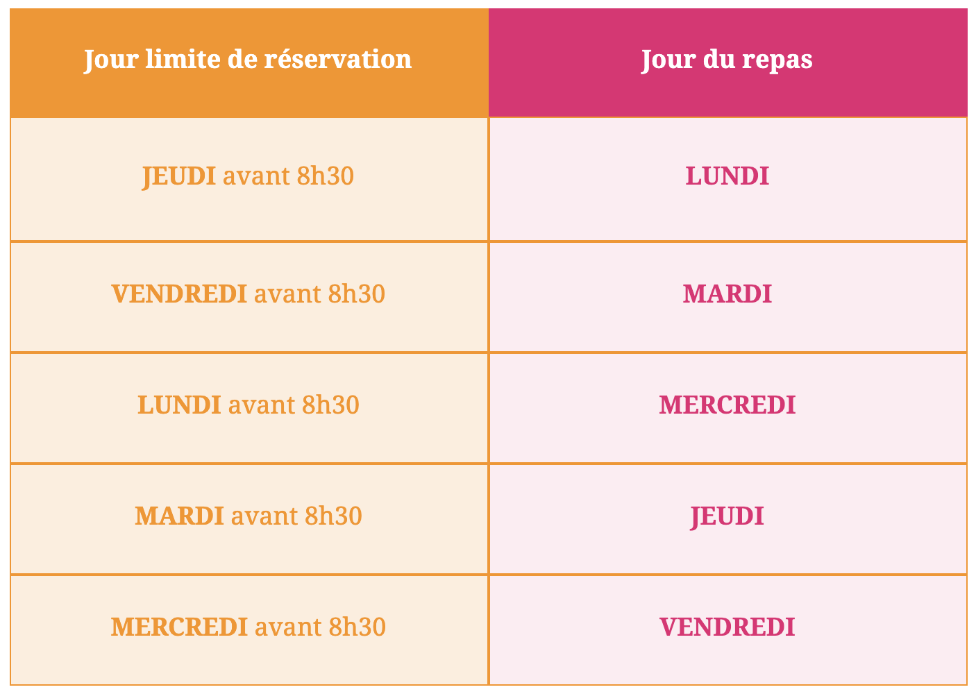 repas jours resa